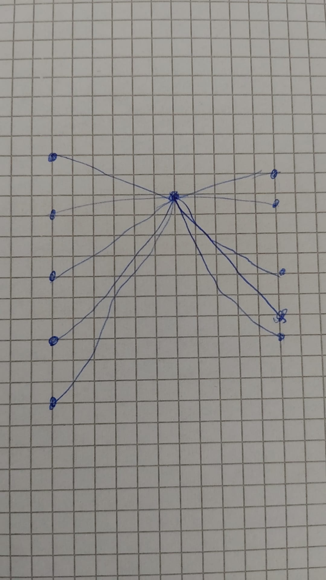 Rules: Players take turns in connecting 2 dots with a line and drawing a new dot in the middle. The player