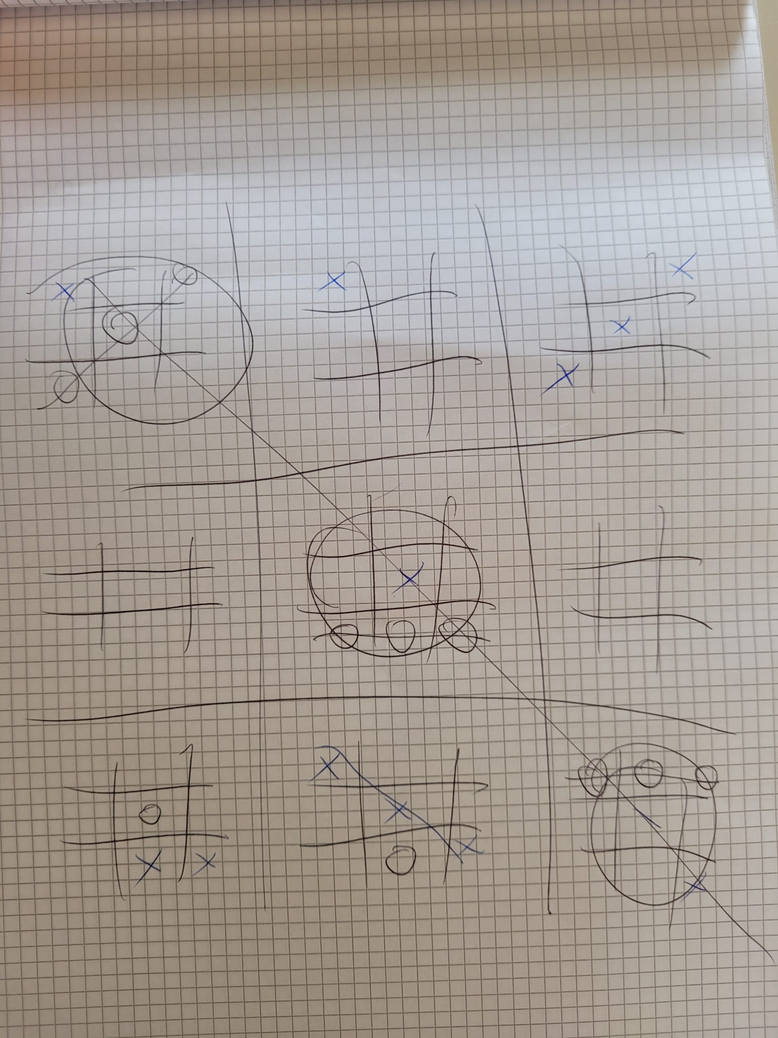 After that he introduced me to a differentversion of tic tac toe where every field is another tictactoe. The goal is to claim a line in the outer board, by winning the inner boards. However, Players must make their move on the board that matches the position of the oponents move on the inner board. So if Player one places an x in bottom middle field, Player two then has to make a move in the bottom middle board. If thats impossible (eg. the board was already claimed), then the Player gets to choose.
